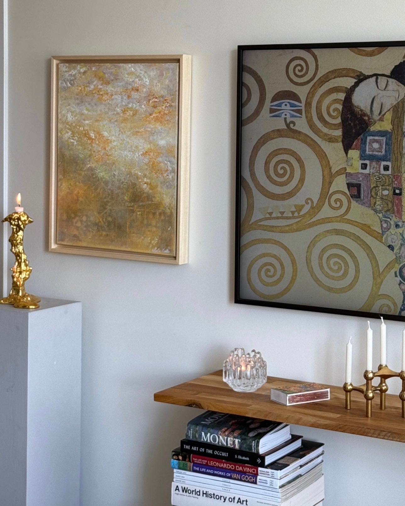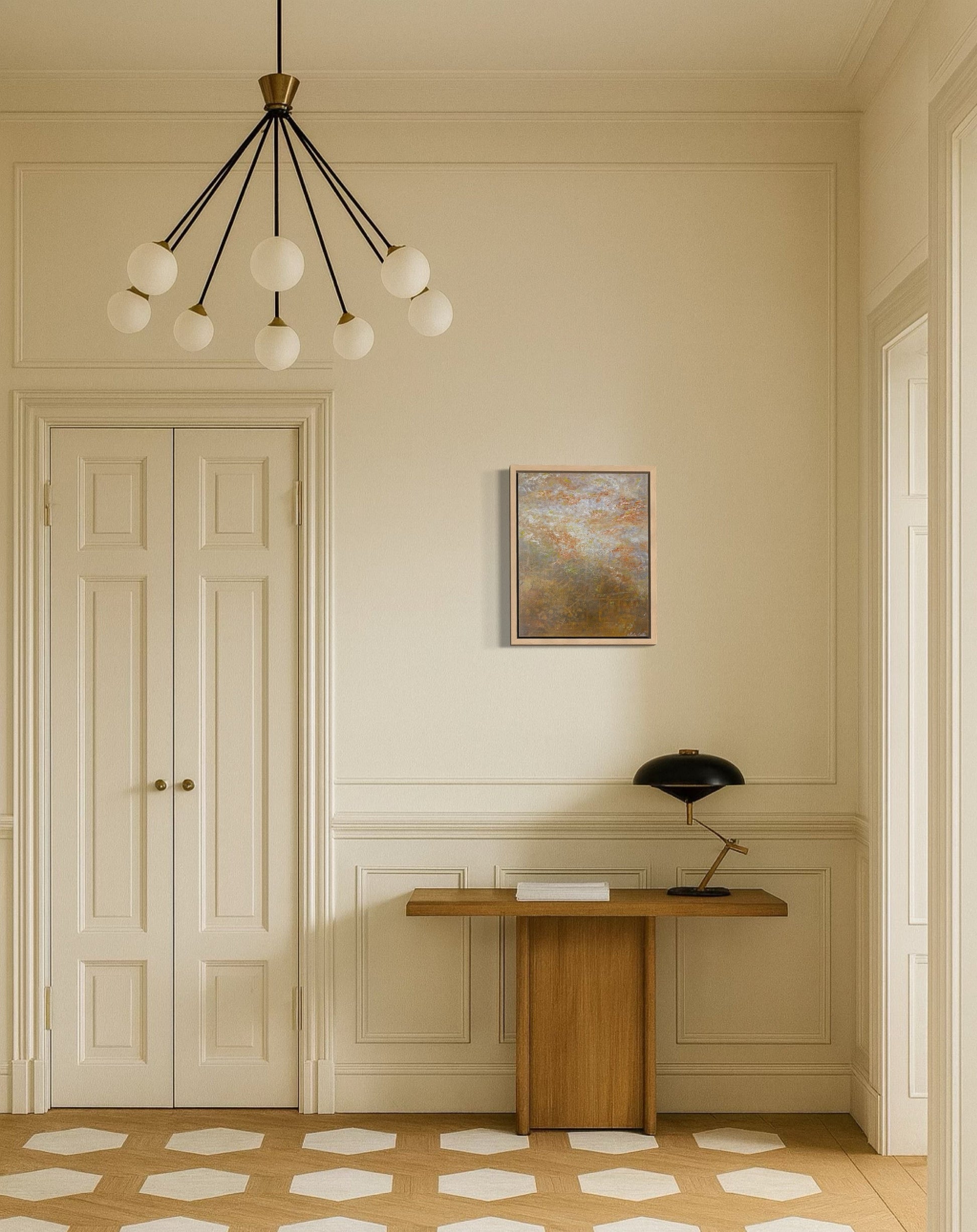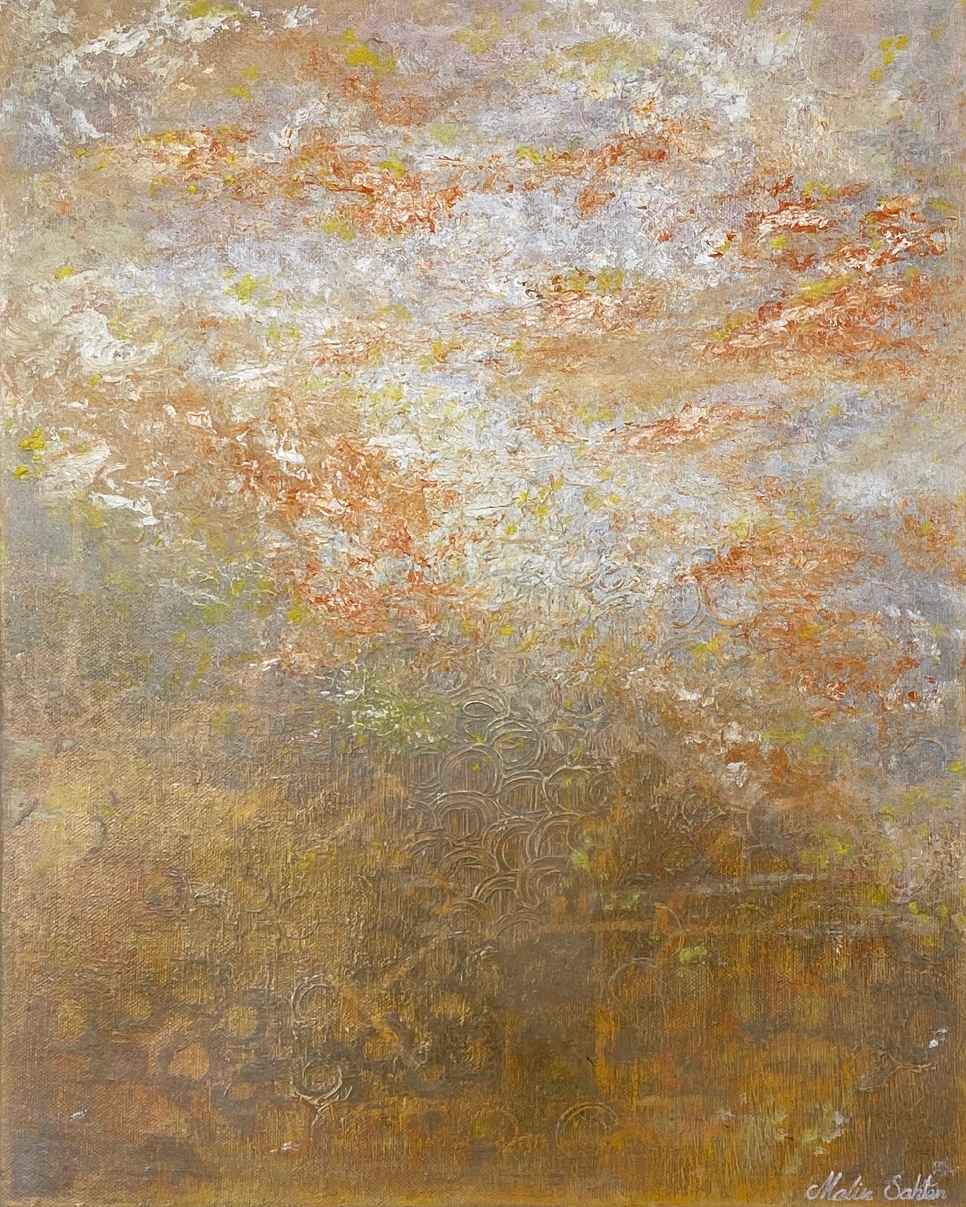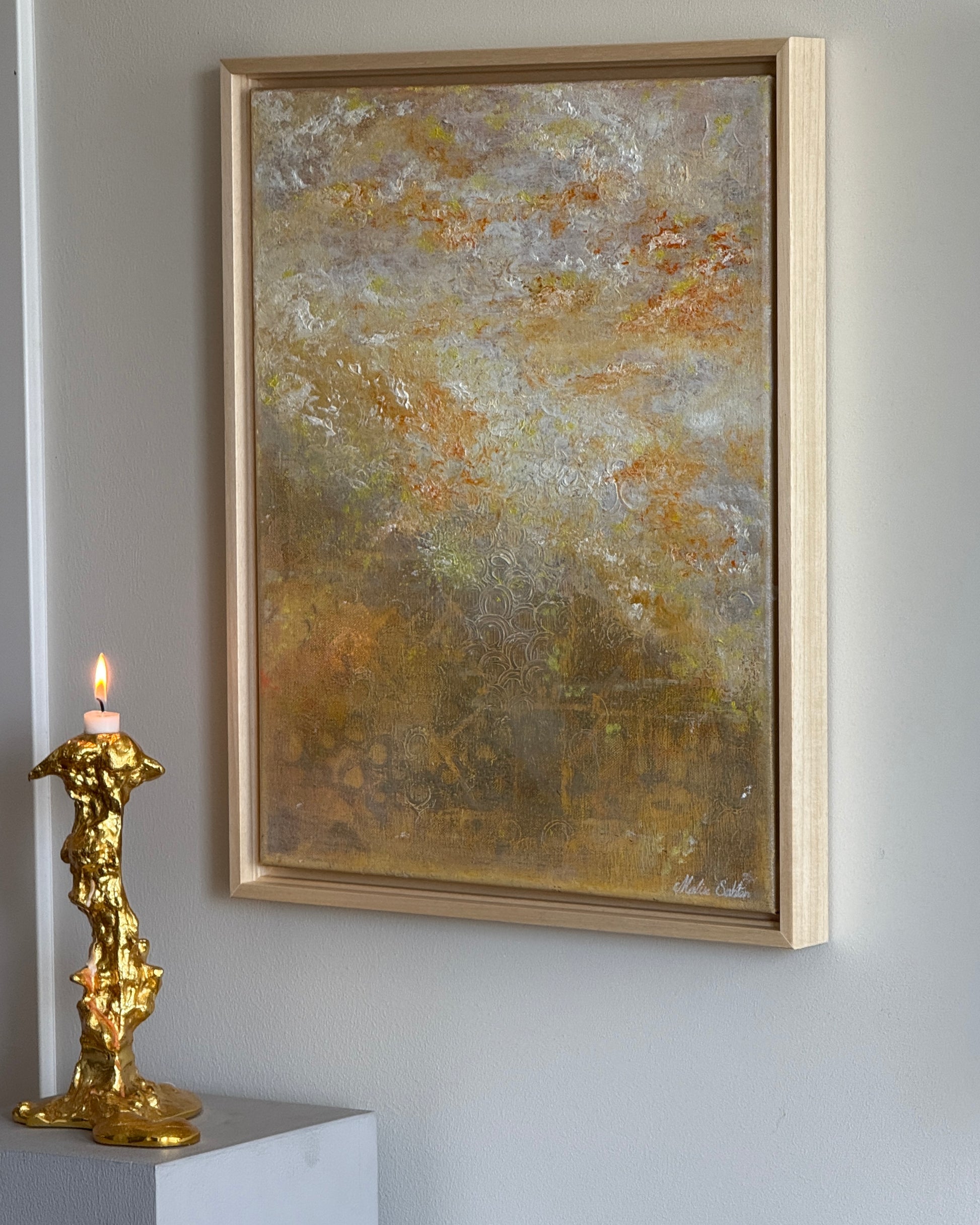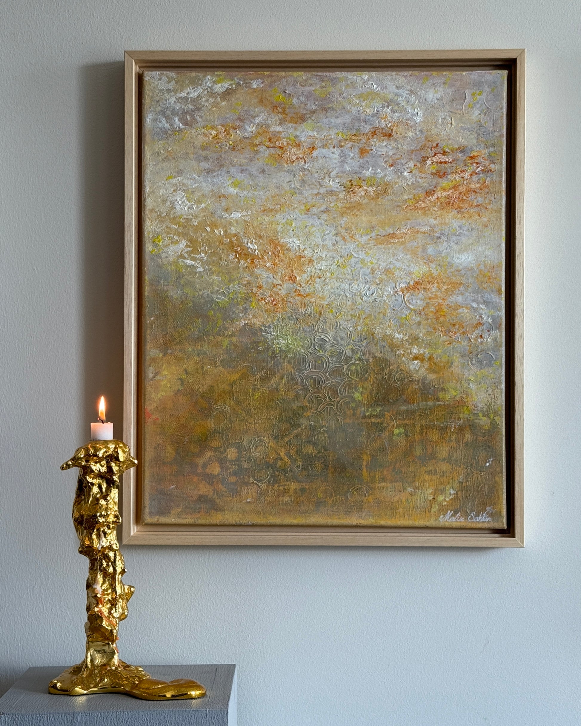 ’Clarity’ is a journey through layers of inner landscapes. Inspired by the cycles of nature, organic geometry, and textured depths, this painting invites you to explore the spaces within—where light begins to emerge. In the warmth of earthy tones, there is grounding, an acceptance of life’s ever-shifting phases. And it is here, in this quiet openness, that clarity takes form—like the endless sky.