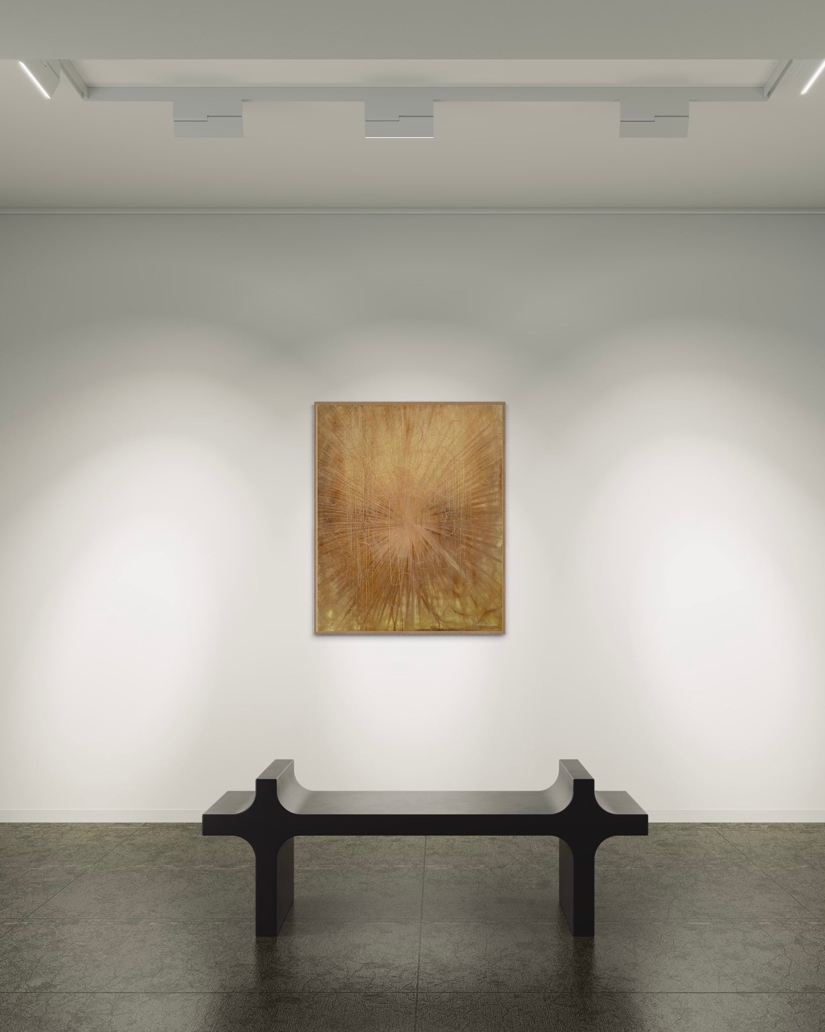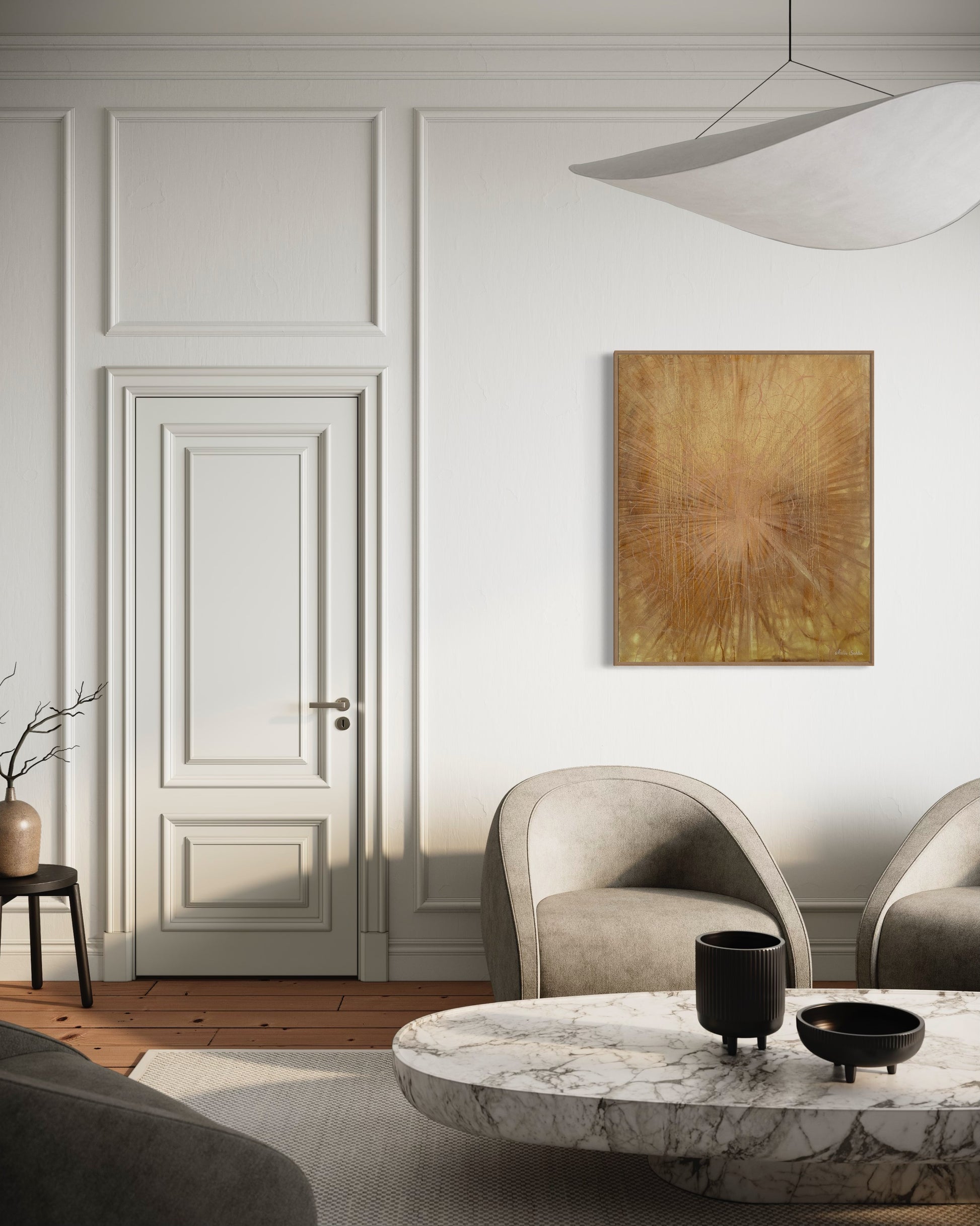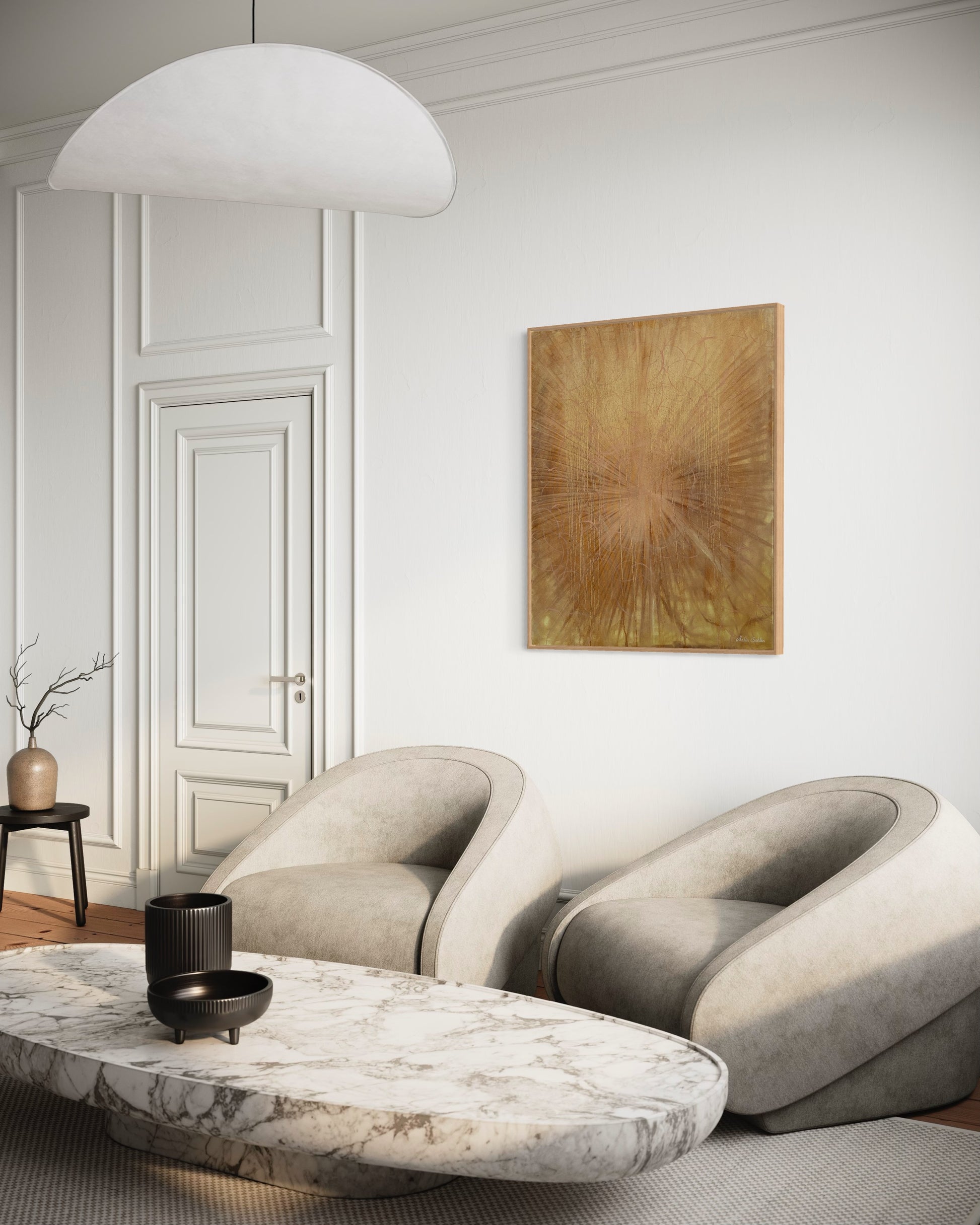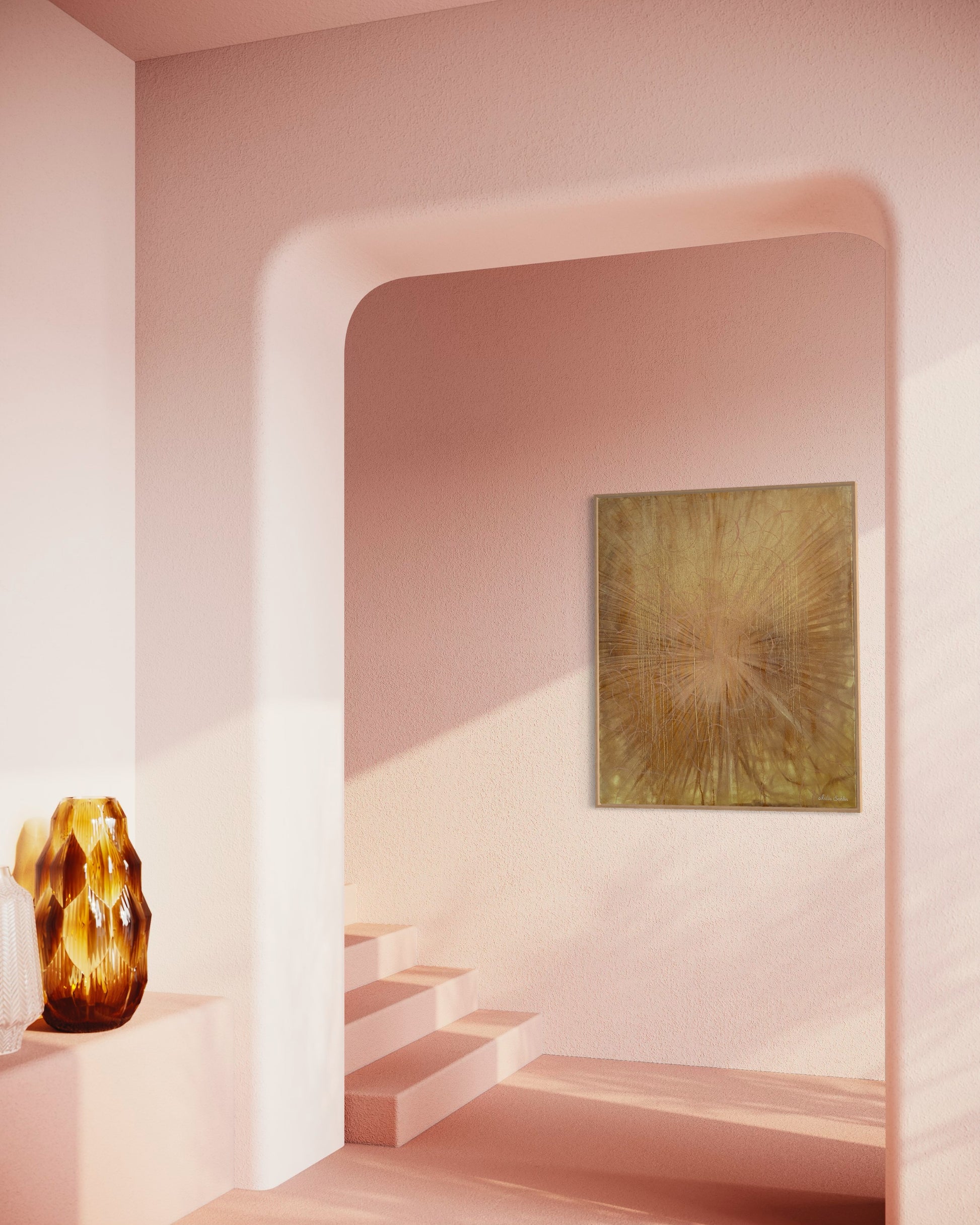 'Eternal Now' is an artwork that captures the essence of the present moment in all its radiance and depth. The center of the canvas is illuminated by a brilliant light, surrounded by lines that extend both vertically and horizontally, creating a sense of expansion and continuity. These rays represent the infinite possibilities of the present moment, stretching outwards in every direction. The subtle circles throughout the canvas represent the cycles of life, each with its own beginning and end, but forever connected in a continuous stream.