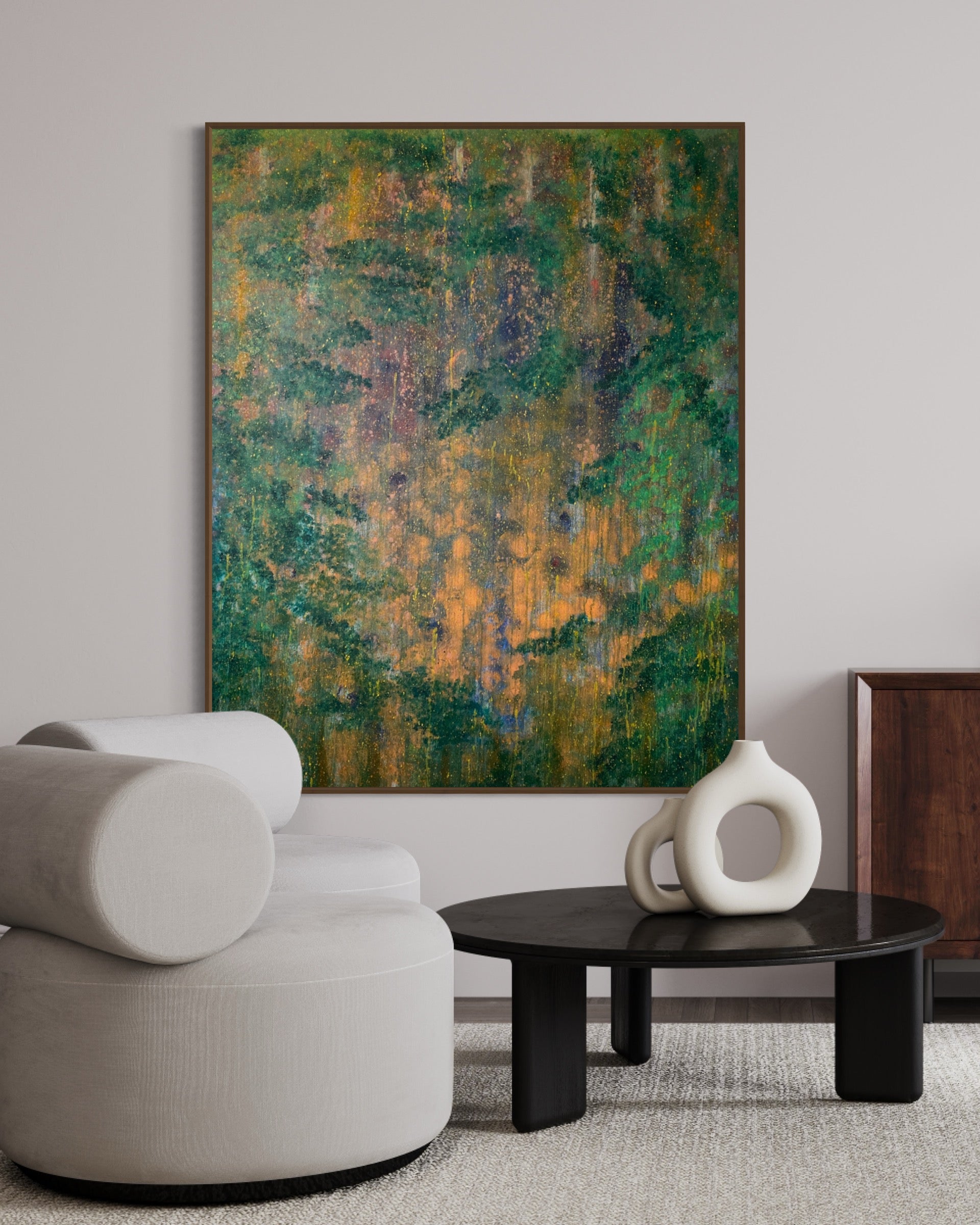 'Grounded' is an artwork that is about having a profound connection to nature, being present in the moment, in the body, soul, and mind. To be centered and balanced no matter what is happening around you. As a tree that grows and blooms naturally, peaceful and stable