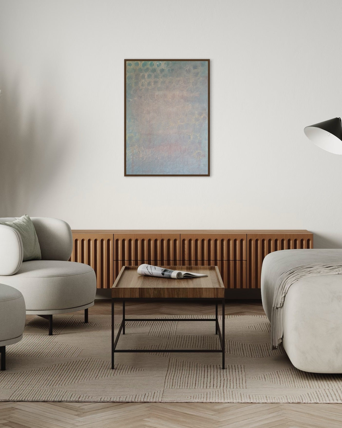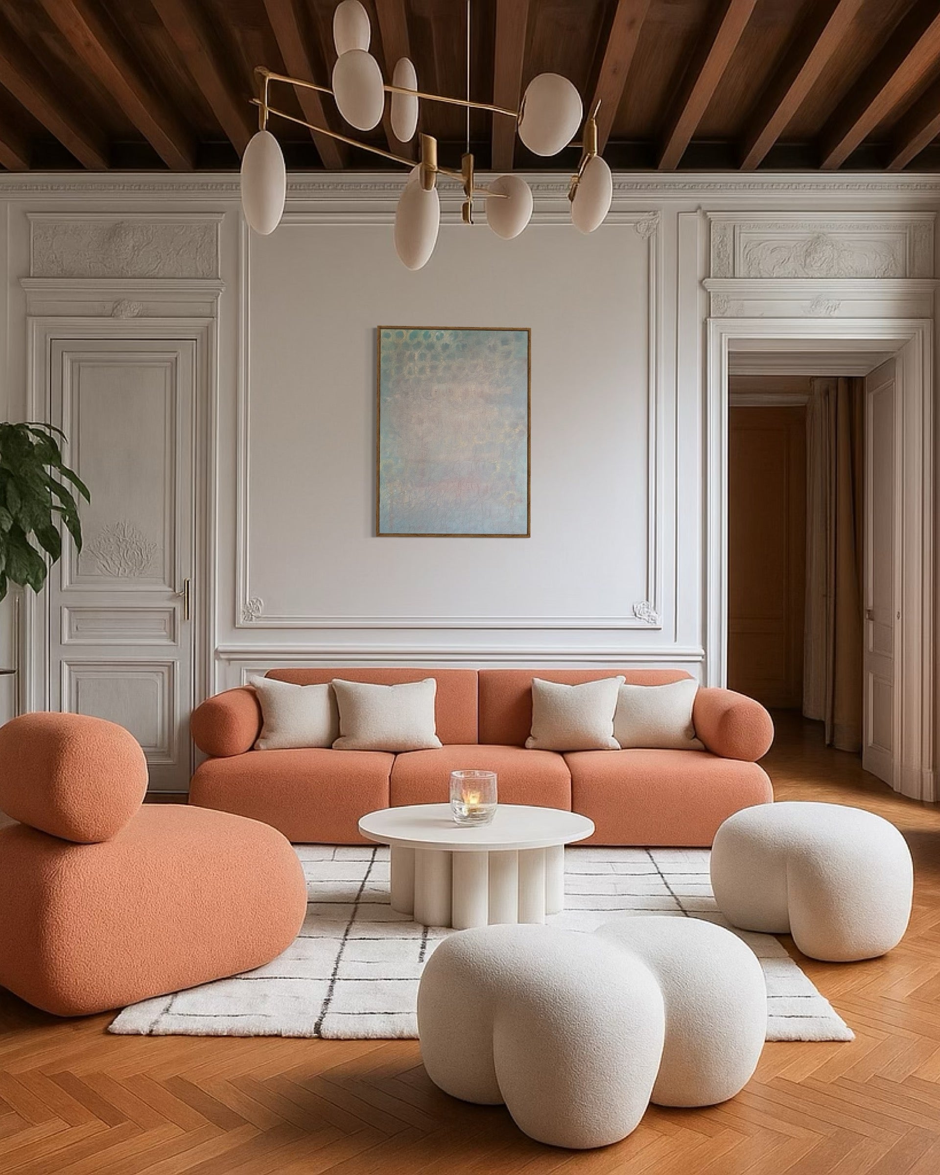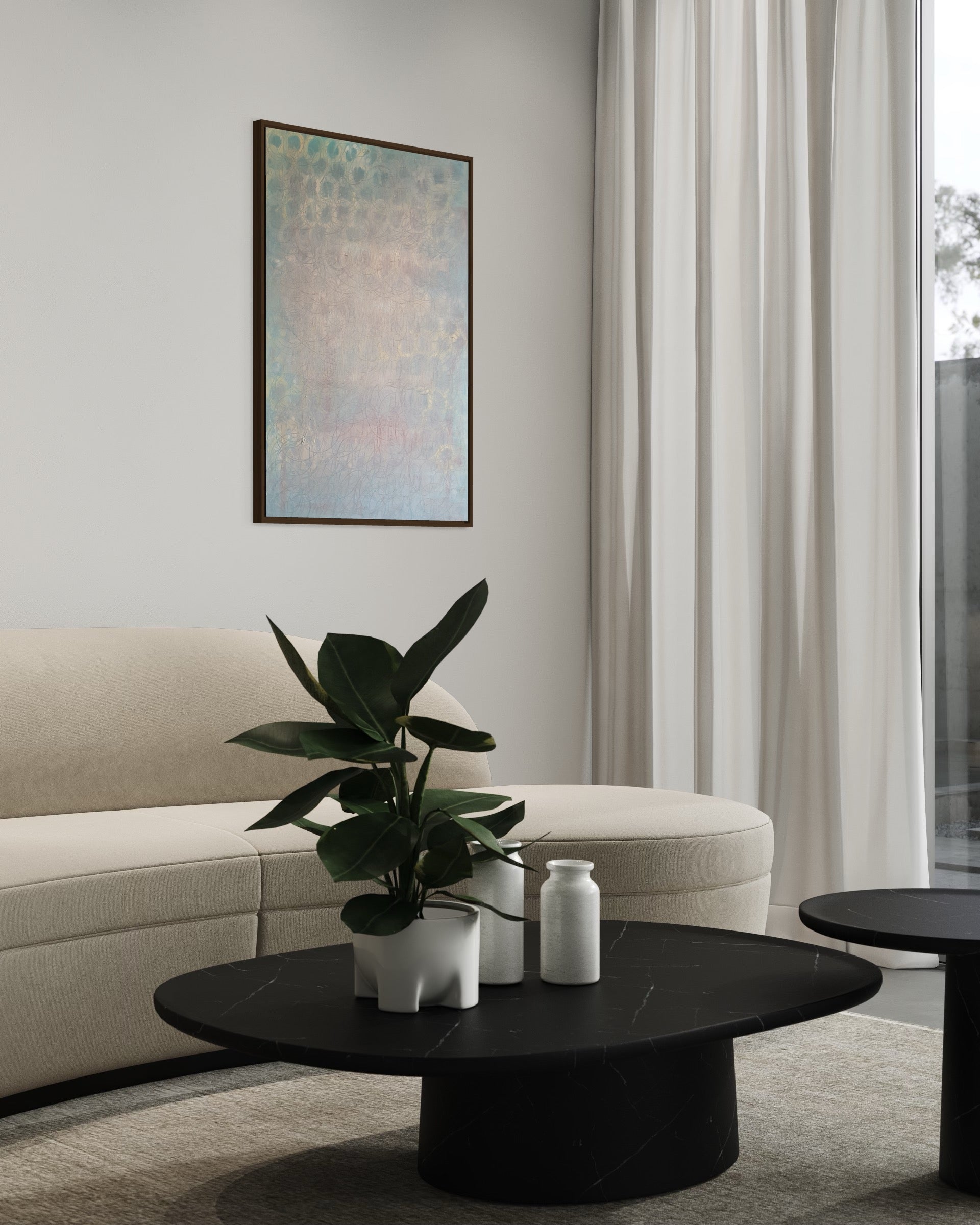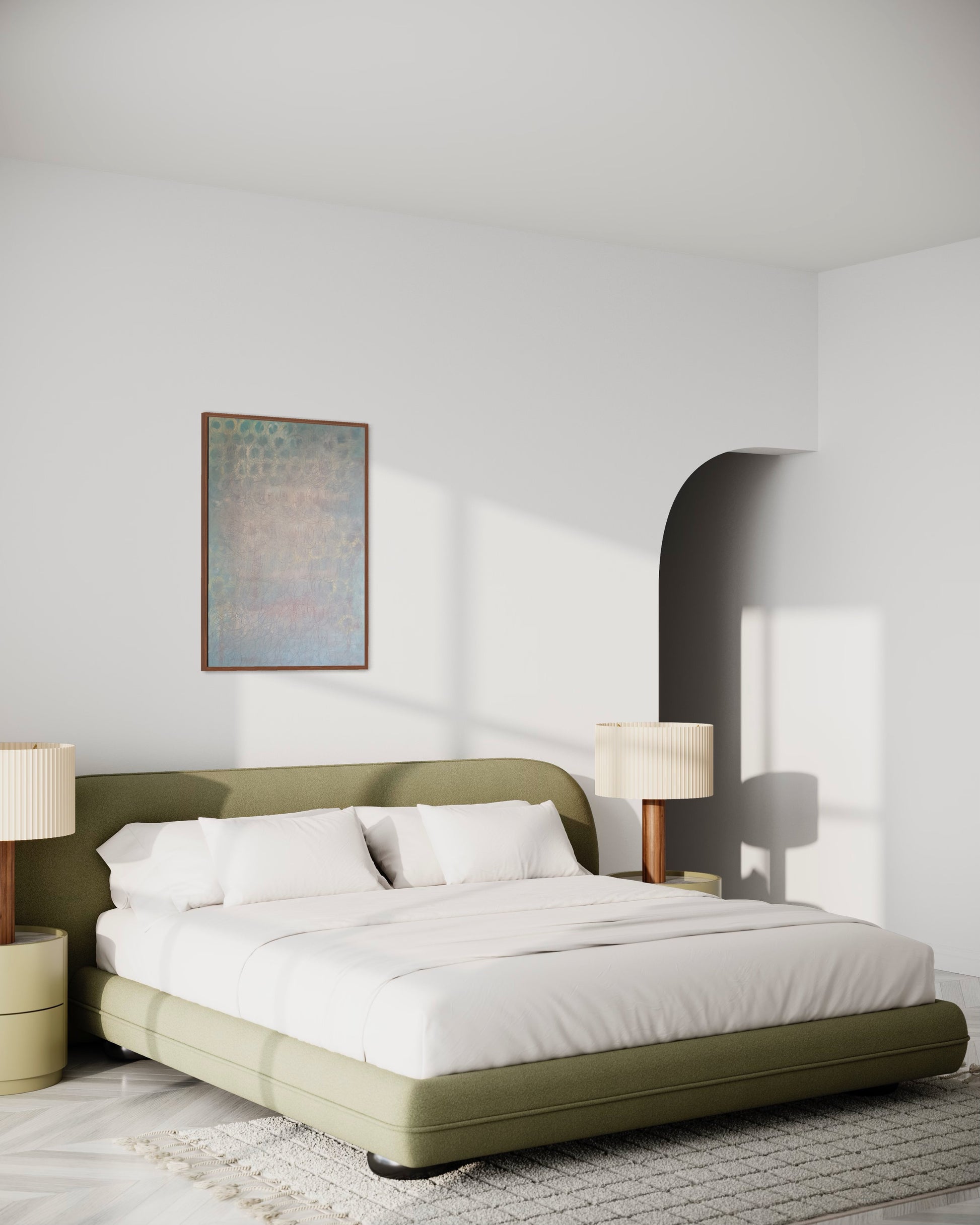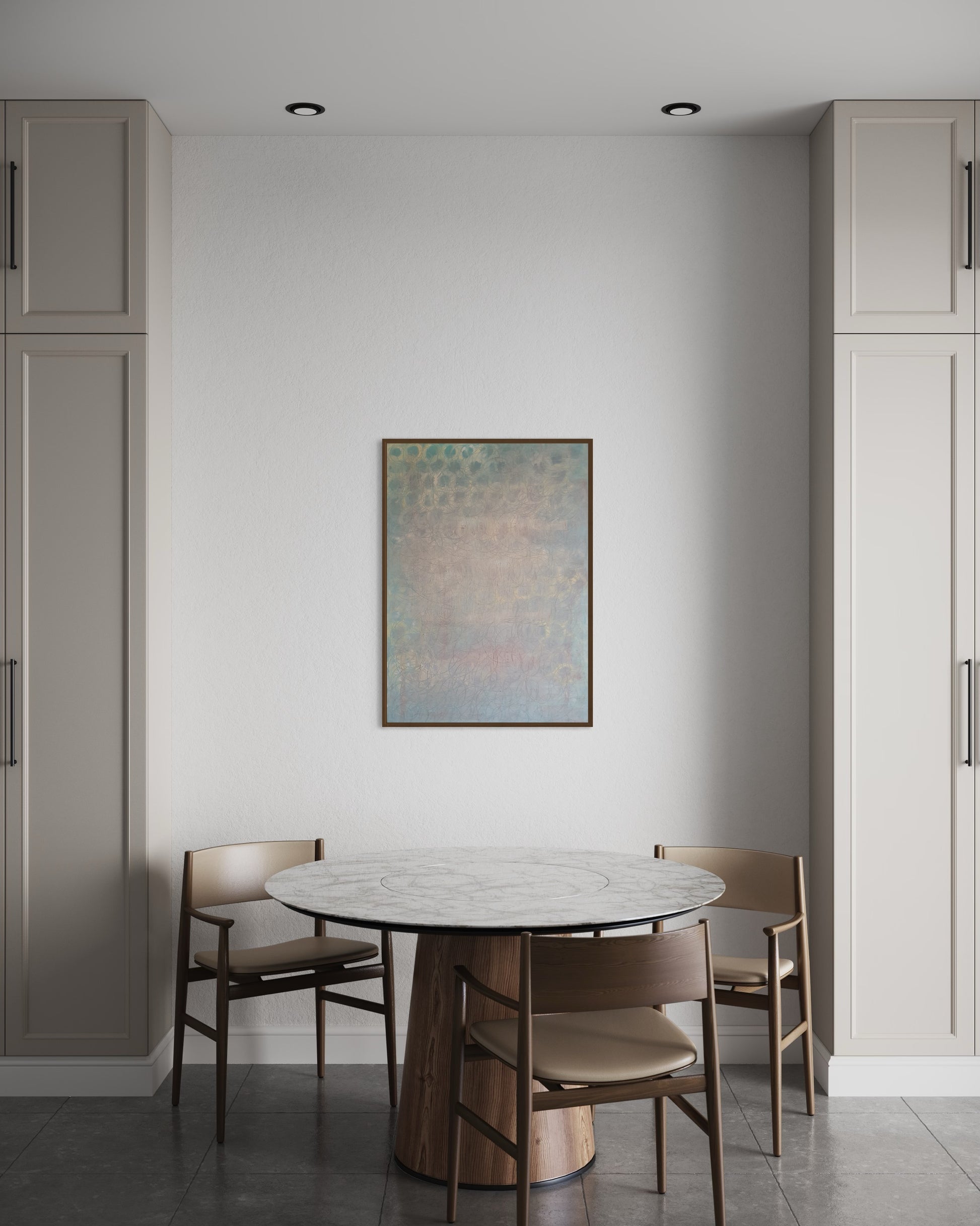 'In the light' is an artwork where the harmony of geometry meets the purity of light. Each circular form represents the cycles of life, while the visible rays of light invite the viewer to embrace the presence of light in our lives. The painting urges us to see the beauty in every moment, to choose to live in the light through life's changes, and to find harmony in life's continuous flow.